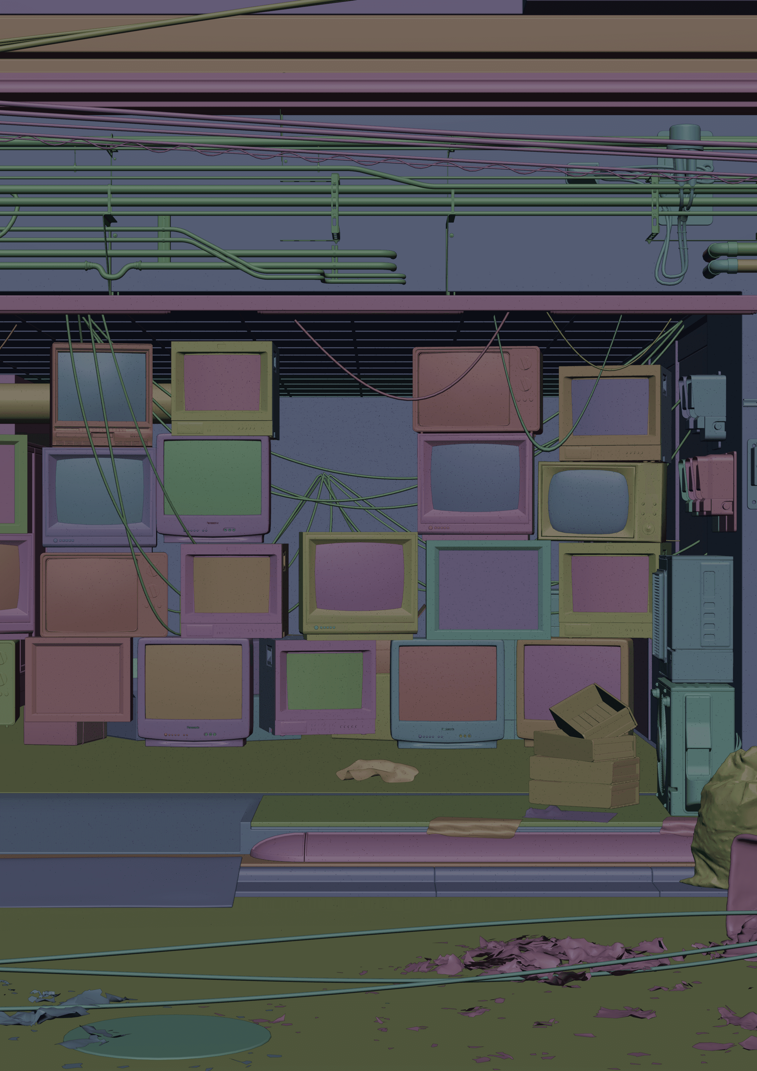 The visual concept directly draws inspiration from the documentary’s title: The Shop Window of Intimacy. I imagined a night scene where Gaspard G stands in front of the window of a questionable shop, filled with television screens displaying suggestive imagery.